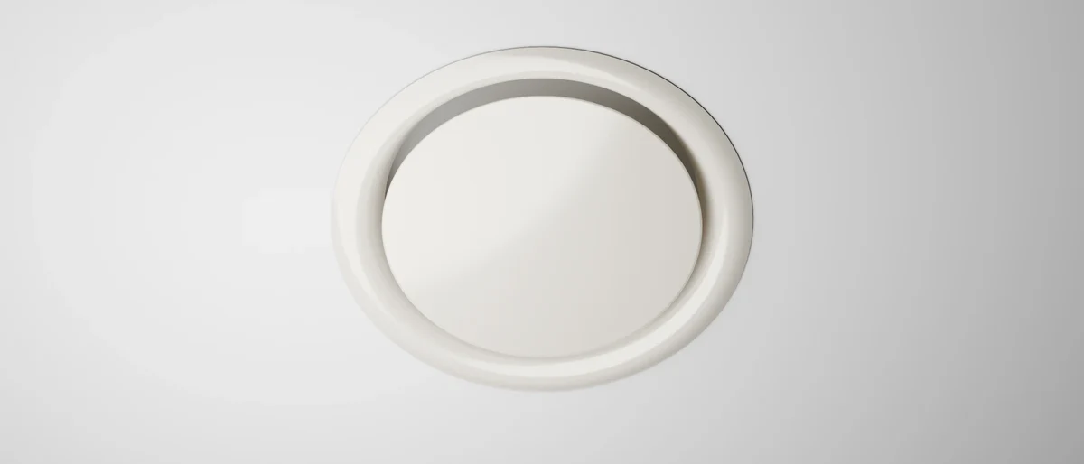 Our WCIRCLE diffuser is suitable for plasterboard ceilings or walls. Once installed, the diffuser forms a permanent bond with the plasterboard, offering outstanding durability. It can be sanded and painted just like the surrounding surfaces. It leaves no visible frames or flanges between the diffuser and the surrounding surface, making it ideal for very clean and modern interior design styles.